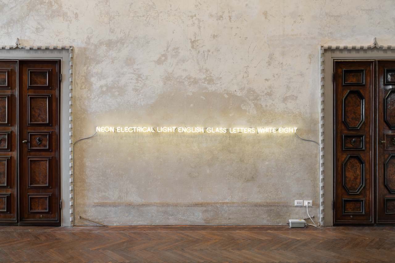 La mostra rende omaggio a Joseph Kosuth, pioniere dell’arte concettuale da sempre legato a Venezia, presentando una selezione di opere seminali che ripercorrono il suo percorso, insieme a una nuova installazione al neon realizzata appositamente per l’occasione.