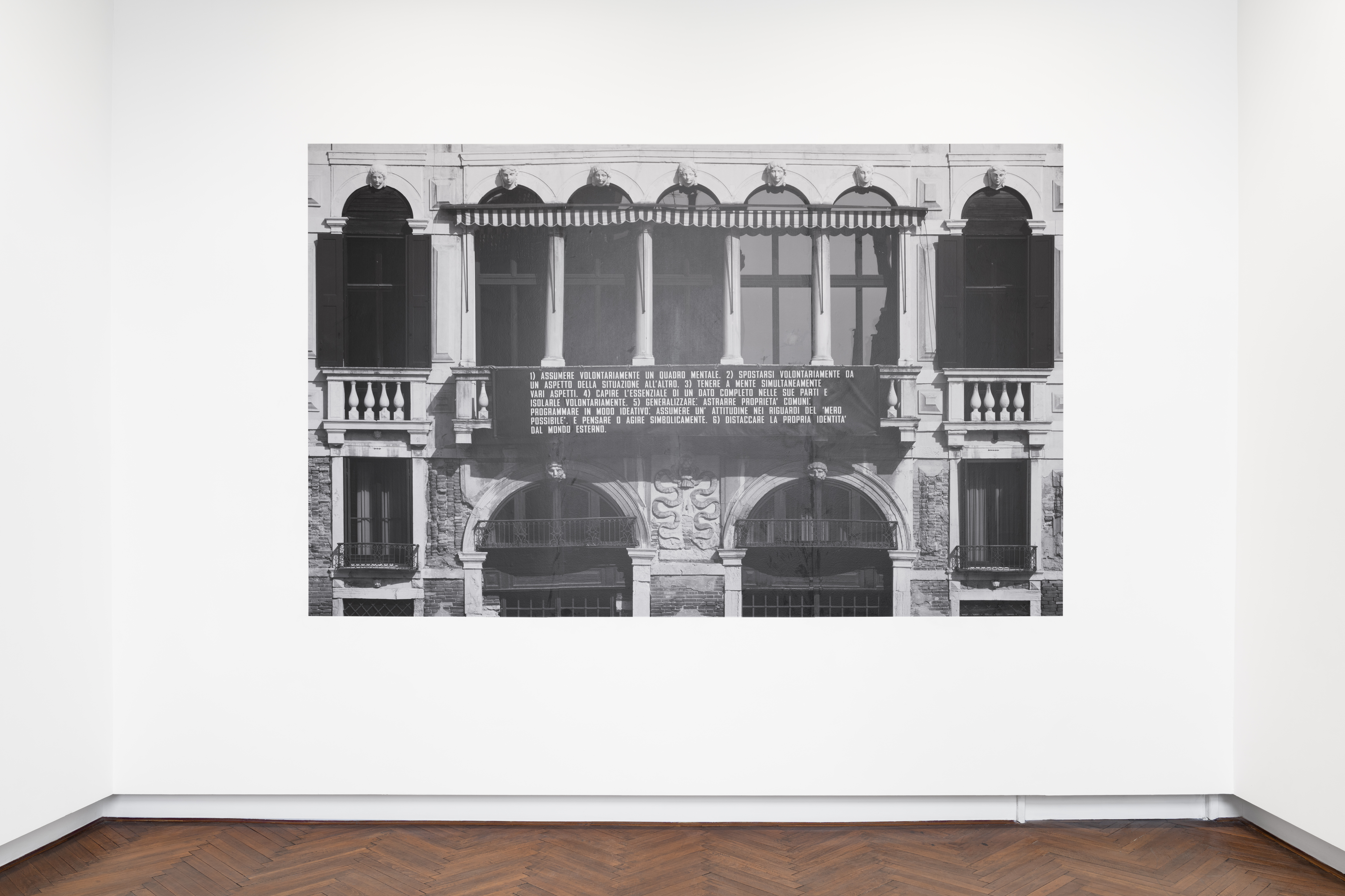 (1969) rappresentano un esercizio di riflessione concettuale, mentre The Seventh Investigation (A.A.I.A.I.) Proposition One (1970) estende questi principi nello spazio pubblico attraverso uno striscione sul Canal Grande.